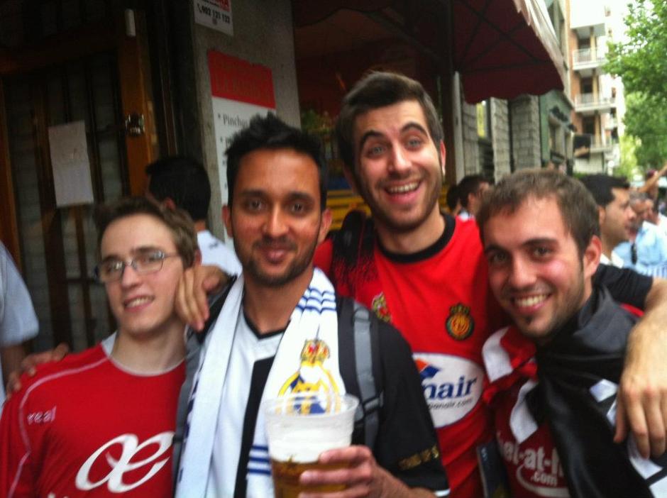 Greeeting rival fans before the game.